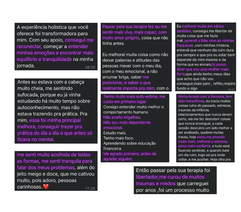 Sou a Geovana, terapeuta especializada em ajudar mulheres a reconstruírem sua autoconfiança e a transformarem seus relacionamentos de dentro pra fora.